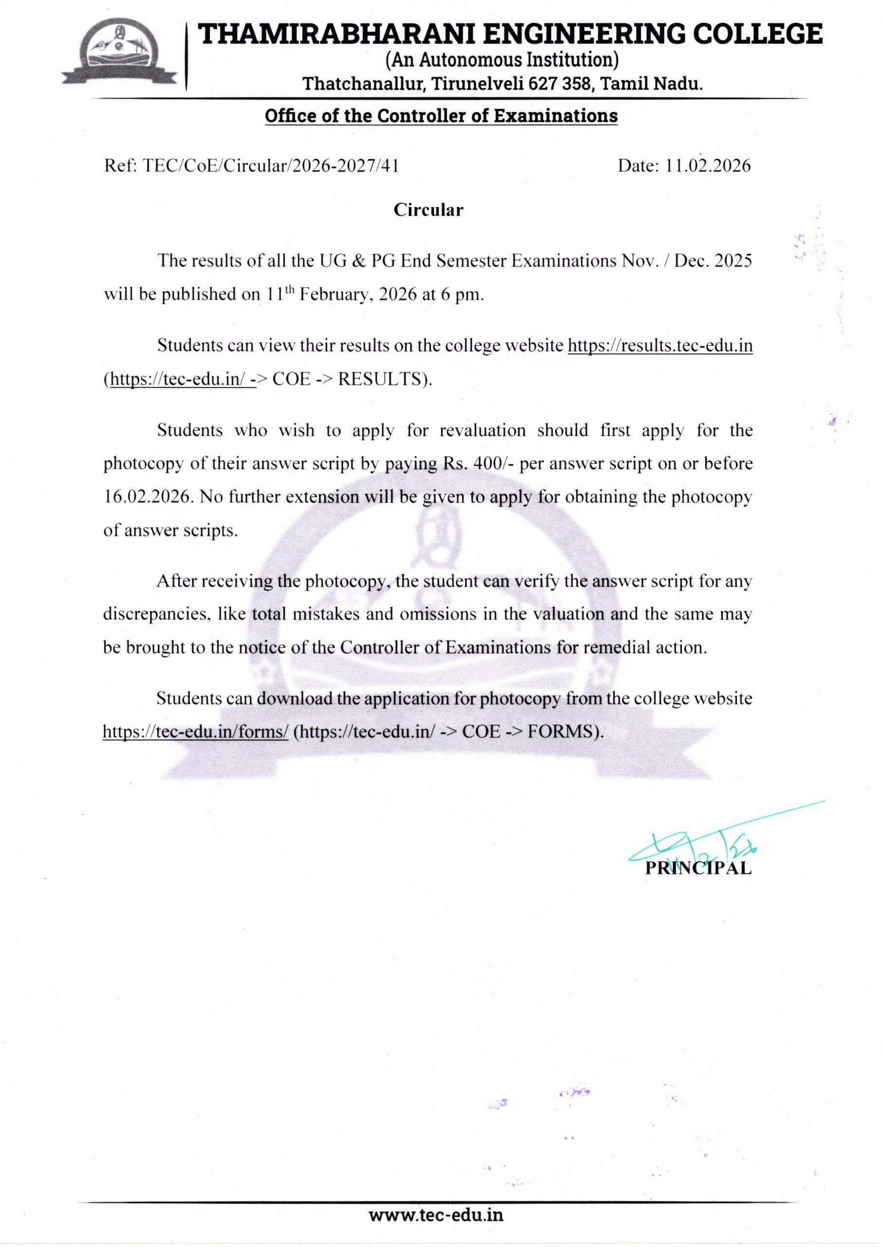 https://results.tec-edu.in/